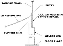 The majority of our Dished Bottom tanks also use a unitized one-piece bottom to sidewall construction without a seam for greater structural strength and ease of cleaning. We utilize both FRP and Steel support structures, overlaying the steel support ring exterior with fiberglass for added resistance against chemical attack. The full circumference support helps eliminate uneven stresses on the tank sidewall.